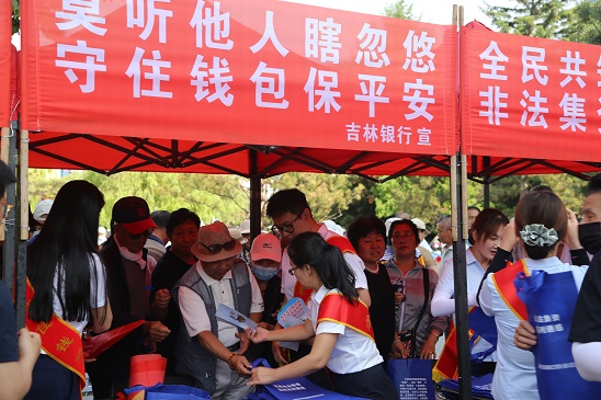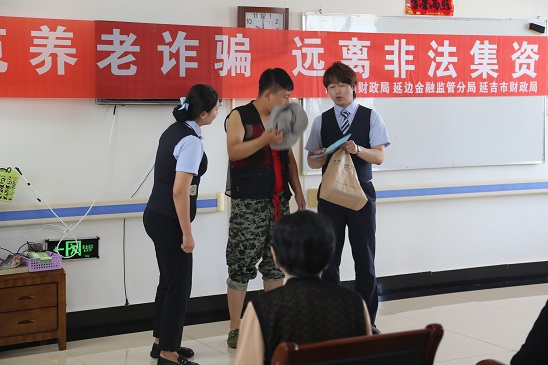上午,前往延边养老服务中心为老年人宣讲防非知识。吉林银行延边分行开展“警惕非法集资坑老陷阱”汉朝双语宣讲,揭露虚假养生理财等各类套路,传授三问自查法,进行问答互动环节等,呼吁老年人“多和子女商量、多打官方电话”,建立家庭共防的保护网。邮储银行延边分行、中国人寿延边分公司分别精心表演了老年人喜闻乐见的原创情景剧“养老院的‘高回报’陷阱”、“养牛老刘的致富路”,聚焦高息存款、高利贷陷阱,以心领神会的代入感,提醒老年人树立正确的理财观念,“天上不会掉馅饼,护好钱袋子”。下午,在延吉公园开展集中宣传活动。活动现场,州法院、州检察院、州教育局、州公安局、州民政局、州市场监管局,人民银行延边州分行、延边保险行业协会和交通银行、邮储银行、兴业银行、吉林银行、延边农商行,中国人寿、平安人寿、太平洋人寿、人保财险、安华农险等银行保险机构,通过播放宣传视频、悬挂横幅、发放宣传手册、宣传礼品等形式,向群众普及非法集资等常见非法金融活动的特征和危害,并设立咨询台,为群众答疑解惑。现场共计发放宣传折页2500余份、袋子和扇子1200余份。州委宣传部统筹全州各类媒体进行集中报道。