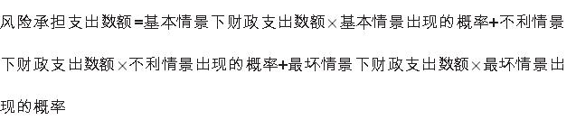 情景分析法。在各类风险支出数额可以进行测算、但出现概率难以确定的情况下,可针对影响风险的各类事件和变量进行“基本”、“不利”及“最坏”等情景假设,测算各类风险发生带来的风险承担支出。计算公式为:
